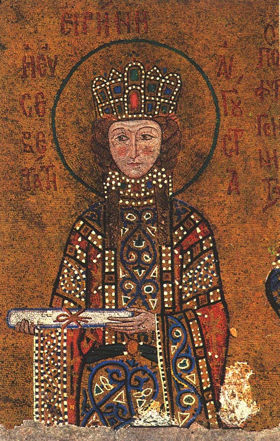 Η Αγία Ειρήνη έζησε τον 12ο αιώνα μ.Χ. και ήταν κόρη ωραία και ενάρετη. Αυτό το παρατήρησε ο βασιλιάς Αλέξιος ο Κομνηνός και την πάντρεψε με το γιο του Ιωάννη, τον επονομαζόμενο Καλοϊωάννη λόγω των πολλών του αρετών. Η ενάρετη λοιπόν βασίλισσα Ειρήνη, ξόδευε με απλοχεριά σε φιλανθρωπικά έργα, μόνη μάλιστα πήγαινε σε φτωχικές καλύβες, για να δώσει όχι μόνο χρήματα, αλλά και ανώτερη ενίσχυση και παρηγοριά της ελπίδας στο Χριστό. Επίσης έκτισε γηροκομεία και ξενώνες, και άφησε σ’ αυτά μεγάλα χρηματικά ποσά για την ασφαλή και άνετη συντήρηση τους. Στη συνέχεια όμως, η Ειρήνη δοκίμασε μεγάλες θλίψεις. Ο άντρας της σε μια εκστρατεία του στη Συρία το 1143 μ.Χ., πέθανε. Αργότερα το ίδιο συνέβη και με τα δύο από τα τέσσερα παιδιά της. Τότε η Ειρήνη, θέλησε να βρει ανακούφιση στις θλίψεις της μέσα στη μοναχική ζωή. Αφού λοιπόν πήρε και τη συγκατάθεση του βασιλιά γιου της Μανουήλ, αποσύρθηκε στη μονή Παντοκράτορος, όπου και έγινε μοναχή, μετονομασθείσα Ξένη. Εκεί τη βρήκε ο θάνατος και την κήδευσαν με μεγάλη απλότητα, όπως η ίδια το επιθυμούσε. Διότι λίγο πριν πεθάνει έλεγε, ότι η βασίλισσα Ειρήνη είχε πεθάνει προ πολλού, και δεν έμενε πλέον παρά μόνο η μοναχή Ξένη.