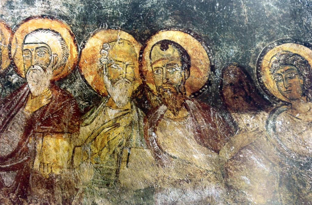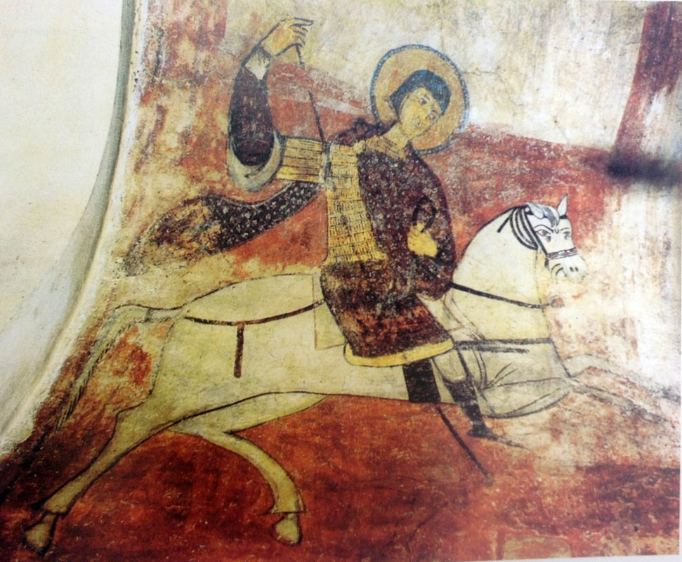 | Κατά τις προαναφερθείσες εργασίες αναστύλωσης το 1975 μ.Χ. μετά την αφαίρεση των εσωτερικών επιχρισμάτων των τοίχων, αποκαλύφθηκε ένα μέρος των Αγιογραφιών του ναού. Παρά το γεγονός ότι δεν είναι μεγάλης καλλιτεχνικής αξίας λόγω του επαρχιωτικού τους χαρακτήρα, παραμένουν ιδιαίτερα σημαντικές καθότι είναι από τις ελάχιστες διατηρημένες αγιογραφίες στην Αθήνα και χρονολογούμενες στο α΄ μισό του 13ου αιώνα μ.Χ..Πρόκειται για έργα με δυτικότροπο προσανατολισμό ως προς το πλάσιμο, το σχέδιο, τα χρώματα αλλά και τη διακοσμητική διάθεση στις λεπτομέρειες. Στον τρούλο όπως αναμενόταν απεικονίζεται η μορφή του Χριστού Παντοκράτορος.Στην αψίδα του ιερού βήματος διακρίνεται μετά δυσκολίας η Ένθρονη Παναγία, που βαστά το Θείο Βρέφος την αγκαλιά της με έναν άγγελο να της παραστέκεται δίπλα. Στην κάμαρα και τους τοίχους του ιερού βήματος απεικονίζεται η Ανάληψη.Στο βόρειο τμήμα του ιερού απεικονίζεται ένας έφιππος στρατιωτικός Άγιος σε μεγάλη κλίμακα, που πιθανότατα πρόκειται για τον Άγιο Γεώργιο. Άξια προσοχής τυγχάνει η ρεαλιστική απόδοση του αλόγου και οι λεπτομέρειες της στολή του Αγίου.Στο νότιο τοίχου του ναού διακρίνεται καθαρά η μορφή του Μεγάλου Βασιλείου. |