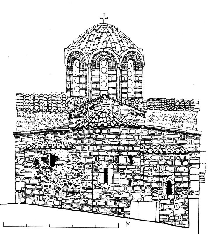 Στη νότια πλευρά και δεξιά αψίδα του ιερού βήματος, απαντούμε απλή λιθοδομή. Προφανώς πρόκειται για παρεμβάσεις συντηρήσεως που υπέστη ο ναός κατά την διάρκεια των αιώνων.ΕΣΩΤΕΡΙΚΟ ΝΑΟΥ