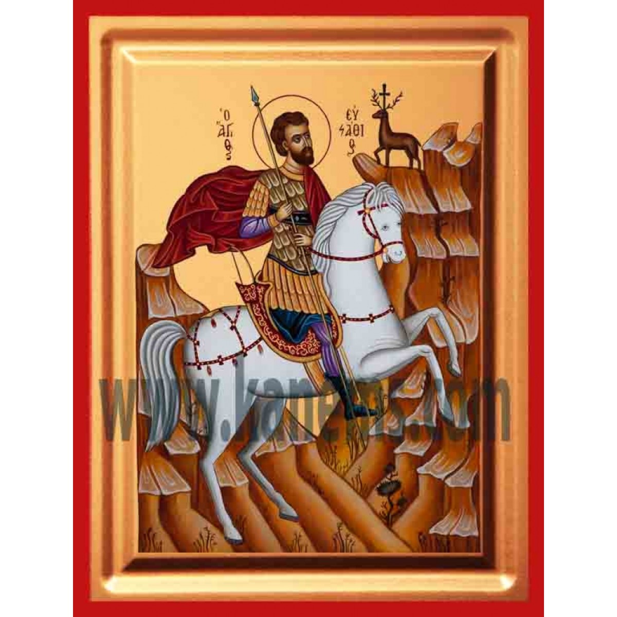 Γιορτάζει σήμερα ὁ ἅγιος μεγαλομάρτυς Εὐστάθιος. Στὴν ἀρχαία χριστιανοσύνη ἀνήκει. Ἦταν στὴ Pώμη, στρατηλάτης, στὰ χρόνια τοῦ Τραϊανοῦ. (Τέλος τοῦ 1ου καὶ ἀρχὲς τοῦ 2ου μ.Χ. αἰῶνος. 98–117 μ.Χ.). Ἦταν πολὺ σπουδαῖος. Ἦταν εἰδωλολάτρης ἀλλὰ εἶχε μεγάλη ἀγάπη γιὰ ὅλους τοὺς ἀνθρώπους καὶ ἦτο πολὺ ἐλεήμων. Καὶ μιὰ μέρα, καθὼς ἐκυνηγοῦσε, τοῦ ἄρεσε καὶ τὸ κυνήγι, παρουσιάστηκε μπροστά του ἕνα παράξενο ἐλάφι. Καὶ βάλθηκε νὰ τὸ κυνηγᾶ. Σὲ κάποια στιγμὴ ἐκεῖνο σταματάει, γυρίζει, καὶ τότε βλέπει πάνω στὰ κέρατά του ἕνα σταυρό, ποὺ ἔλαμπε. Καὶ μέσα ἀπ’ τὰ κέρατα βγῆκε φωνὴ καὶ τοῦ εἶπε: «Εὐστάθιε, γιατί μὲ διώκεις; Ἐγὼ εἶμαι ὁ Ἰησοῦς Χριστός, ὁ Κύριος». Καὶ στὴ συνέχεια, ἀφοῦ τὸν κάλεσε ὁ Χριστός, ἔγινε χριστιανὸς μ’ ὅλη τὴν οἰκογένειά του.