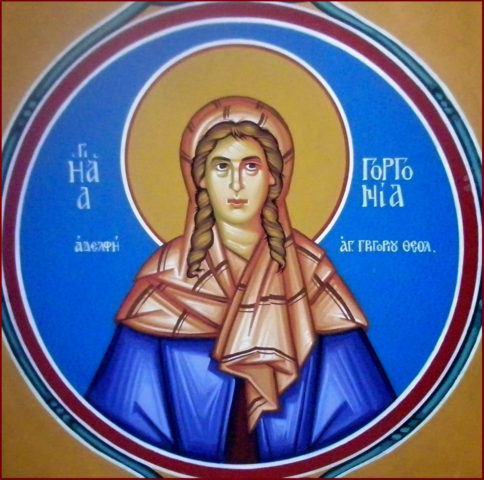 Η Αγία Γοργονία, ήταν η νεότερη αδελφή του Αγίου Γρηγορίου του Θεολόγου (βλέπε 25 Ιανουαρίου) και κόρη της ευσεβούς Νόννας (βλέπε 5 Αυγούστου) και του επισκόπου Ναζιανζού Γρηγορίου (βλέπε 1 Ιανουαρίου) ανατράφηκε από τούς γονείς της «με παιδεία και νουθεσία Κυρίου». Αναδείχθηκε δε, ισάξια σε αρετή και αγιότητα βίου και με τους άλλους αδελφούς της. Διακρίθηκε για την οξύνοιά της, την προσήλωσή της στις Άγιες γραφές, ήταν δε κόσμια, σεμνή, διακριτική και ταπεινή στο φρόνημα.