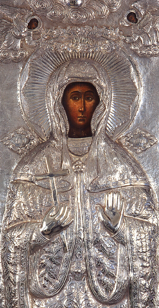 Οἱ ἀγῶνές σου Σεμνὴ καὶ ὁ στέφανος, οἱ ἱδρῶτές σου ἁγνὴ καὶ τὰ θαύματα, τοῦ διαβόλου ᾔσχυναν τὰ τρόπαια· Χριστὸν γὰρ τὸν νυμφίον σου, ἐκ καρδίας ποθοῦσα, οὐ μάστιγας οὐ θανατον, δι᾽ αὐτὸν ἐπτοήθης· ἀλλ᾽ ἀνετέθης ὅλῃ τῷ Θεῷ, τῆς εὐσεβείας φοροῦσα τὸν στέφανον.