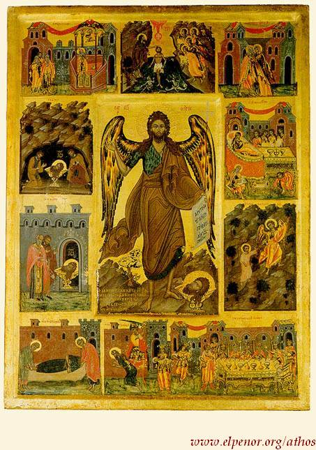 Μνήμη δικαίου μετ᾽ ἐγκωμίων· σοί δέ ἀρκέσει ἡ μαρτυρία τοῦ Κυρίου Πρόδρομε· ἀνεδείχθης γάρ ὄντως καί Προφητῶν σεβασμιώτερος, ὅτι καί ἐν ῥείθροις βαπτίσαι κατηξιώθης τόν κηρυττόμενον· ὅθεν τῆς ἀληθείας ὑπεραθλήσας, χαίρων εὐηγγελίσω καί τοῖς ἐν ᾅδῃ, Θεόν φανερωθέντα ἐν σαρκί, τόν αἴροντα τήν ἁμαρτίαν τοῦ κόσμου, καί παρέχοντα ἡμῖν τό μέγα ἔλεος.