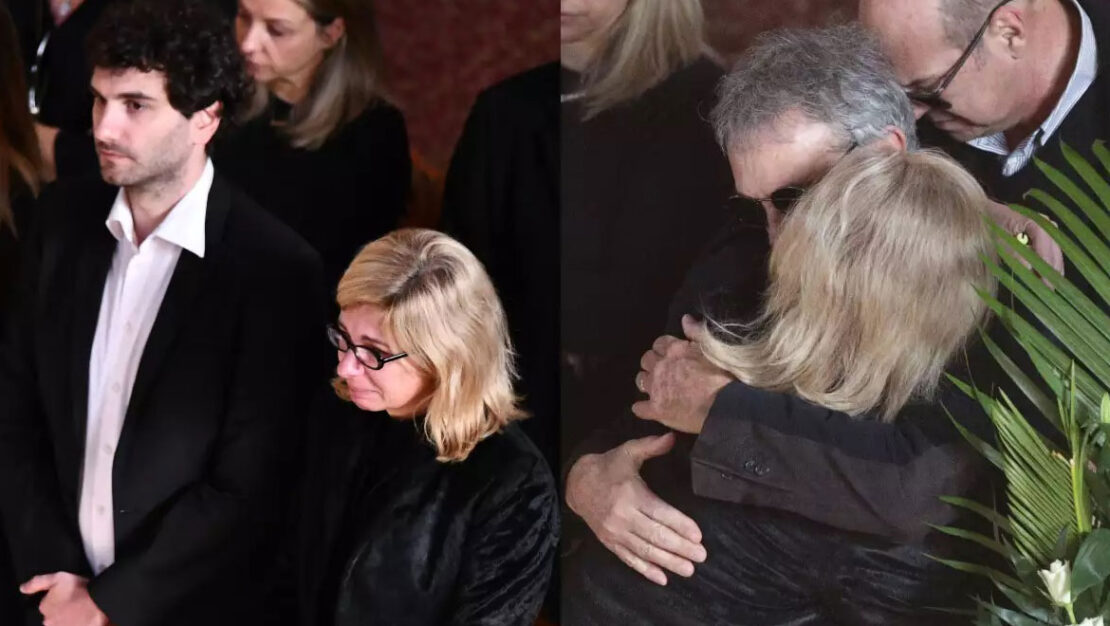 Η Μαρία Παναγοπούλου δεν έκρυψε τα δάκρυά της μέσα στον Ιερό Ναό, ενώ ο Γιώργος Νταλάρας, στενός φίλος της οικογένειας, την αγκάλιασε σφιχτά.
