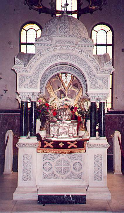 Όταν όμως οι Τούρκοι επρόκειτο να καταλάβουν την πόλη το 1460 μ.Χ., τότε ο Θωμάς Παλαιολόγος, αδελφός του τελευταίου αυτοκράτορας Κωνσταντίνου του Παλαιολόγου και τελευταίος Δεσπότης του Μοριά, πήρε το πολύτιμο κειμήλιο και το μετέφερε στην Ιταλία. Εκεί, αφού το παρέλαβε ο Πάπας Πίος ο Β, το πολύτιμο κειμήλιο εναποτέθηκε στον ναό του αγίου Πέτρου της Ρώμης.