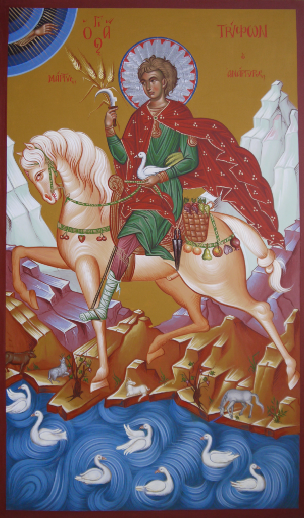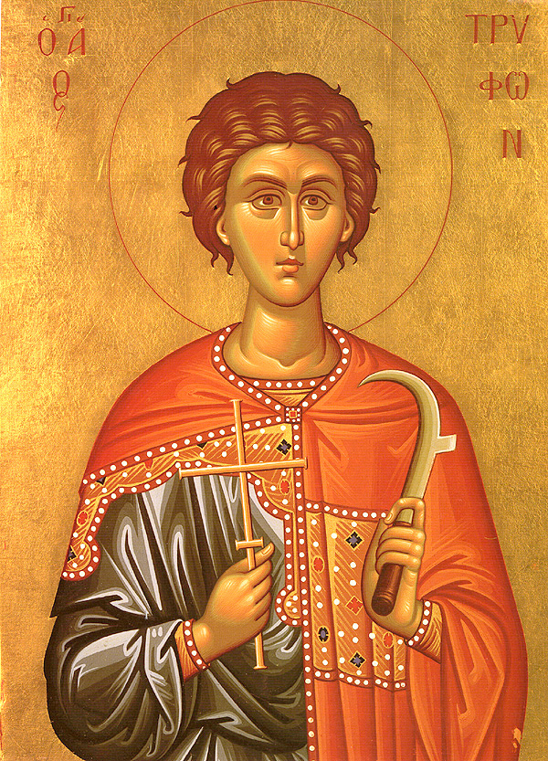 Φύλαττε ἐκ βλάβης τε καὶ φθορᾶς, ἡμῶν τὰς ἀμπέλους, καὶ τοὺς κήπους καὶ τὰ φυτά, ὡς μεγίστην χάριν, λαβὼν παρὰ Κυρίου, καὶ δίωκε θηρία Τρύφων τὰ φθείροντα.