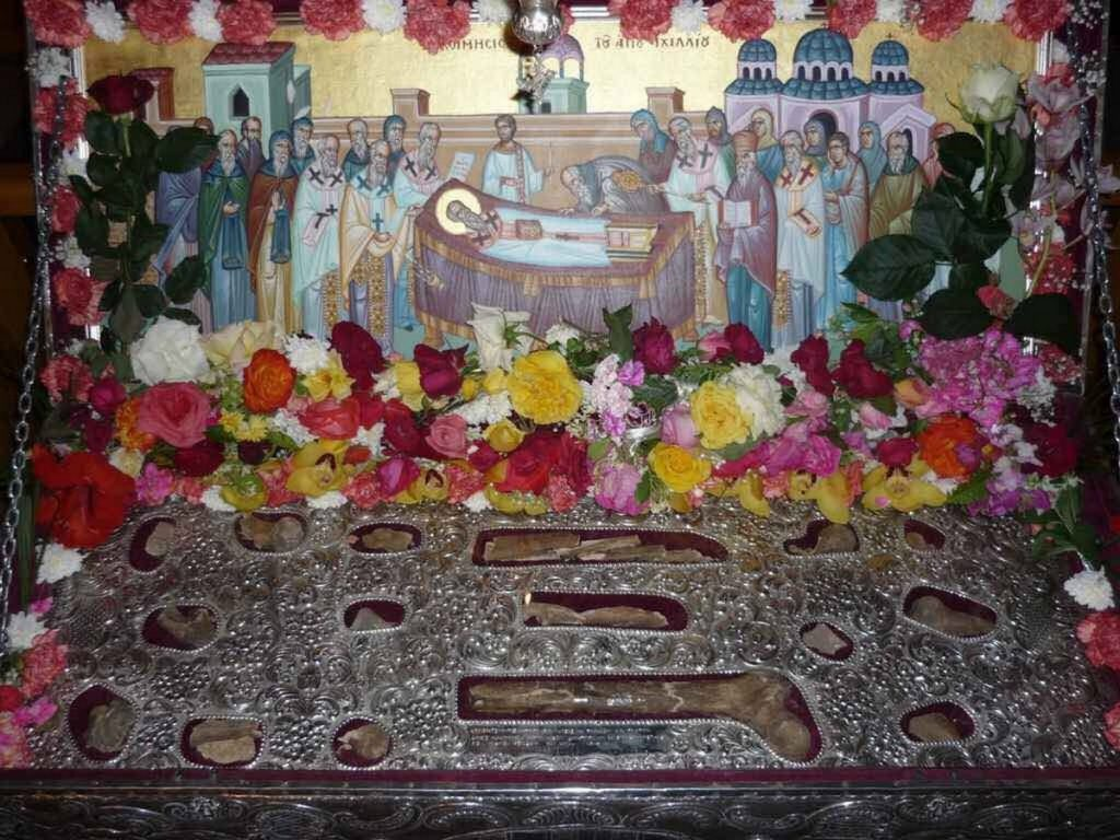 Ἡ θεία σου σορός, , ὧ Ἀχίλλιε Πάτερ, ὡς ἄλλη Σιλωὰμ κολυμβήθρα ἐδείχθη, πηγὴν ἁγιάσματος παραδόξως ἐκβλύζουσα· οὗ μετέχοντες οἱ προσιόντες ἐν πίατει χάριν ἄφθονον, καὶ ψυχικὴν σωτηρίαν, εὐχαῖς σου λαμβάνομεν.