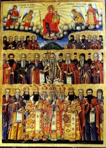 Τῶν ἁγίων Μαρτύρων τά κατορθώματα, οὐρανῶν αἱ δυνάμεις ὑπερεθαύμασαν, ὅτι ἐν σώματι θνητῷ, τόν ἀόρατον ἐχθρόν τῇ δυνάμει τοῦ Σταυροῦ, ἀγωνισάμενοι καλῶς, ἐνίκησαν ἀοράτως, καί νῦν πρεσβεύουσι τῷ Κυρίῳ ἐλεηθῆναι τάς ψυχάς ἡμῶν.
