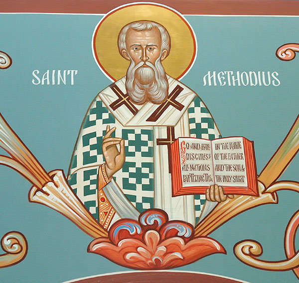 Η ζωή όμως του Μεθοδίου, ως Αρχιεπισκόπου, περιπλέκεται στους ανταγωνισμούς των Λατίνων και των Φράγκων Επισκόπων, στις δολοπλοκίες των ηγεμόνων και των αρχόντων και γίνεται μαρτυρική. Τον φυλακίζουν δυόμιση χρόνια σε μοναστήρι του Μέλανος Δρυμού και μόλις το 873 μ.Χ. ο Πάπας Ιωάννης Η’ τον ελευθερώνει και τον αποκαθιστά. Η λατρεία όμως στα σλαβονικά απαγορεύεται και μόνο το κήρυγμα επιτρέπεται. Το 885 μ.Χ., στη Μοραβία, ο Μεθόδιος παραδίδει το πνεύμα του μέσα σε ένα κλίμα αντιδράσεων και ραδιουργιών. Είχε όμως προετοιμάσει διακόσιους νέους ιεραποστόλους. Αυτοί ξεχύθηκαν στην Ανατολική Ευρώπη, διέδωσαν και στερέωσαν την Ορθοδοξία στα σλαβικά Έθνη. Ήταν τέτοια δε η δύναμη και το ρίζωμα του έργου τους, ώστε ούτε η λαίλαπα της Ουνίας κατόρθωσε να εξανεμίσει το θεολογικό και πολιτισμικό έργο των δύο Ισαποστόλων αδελφών, του Κυρίλλου και του Μεθοδίου.
