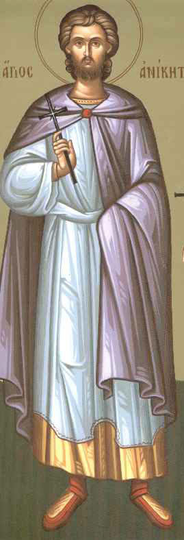Θείας πίστεως, τὴ συμφωνία, τὴν οἰκείωσιν, τῆς συγγενείας, δι’ ἀγώνων ἱερῶν ἐλαμπρύνατε, θεομακάριστε Μάρτυς Ἀνίκητε, σὺν τῷ Φωτίῳ φωτὸς τῷ θεράποντι. Ἀλλὰ αἰτήσασθε, δοθήναι πταισμάτων ἄφεσιν, τοὶς μέλπουσιν ὑμῶν τὴν θείαν ἄθλησιν.