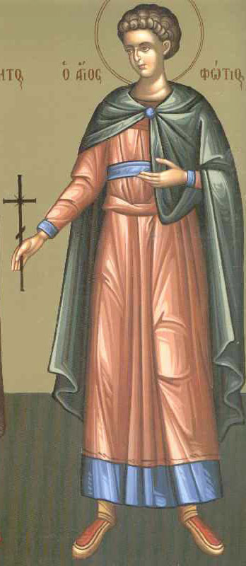 Καταβαλόντες τοῦ ἐχθροῦ τὰς ἐπάρσεις, τῇ καρτερίᾳ τῶν δεινῶν ἀθλοφόροι, τὸν οὐρανὸν ᾠκήσατε γηθόμενοι, Φώτιε ἀοίδιμε, καὶ Ἀνίκητε μάκαρ· ὅθεν μακαρίζεσθε, εἰς αἰῶνας αἰῶνος, ὑπὲρ ἡμῶν πρεσβεύοντες Χριστῷ, τῶν ἐκτελούντων ὑμῶν τὰ μνημόσυνα.