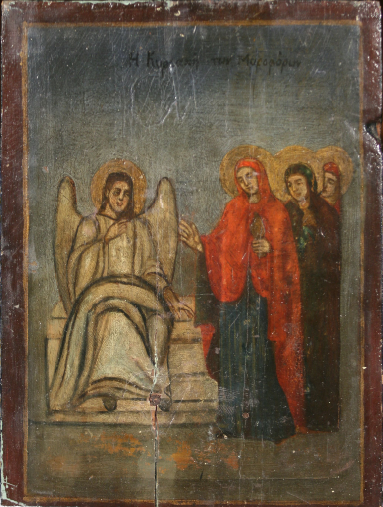 Μυροφόρες είναι οι γυναίκες που ακολουθούσαν το Κύριο μαζί με τη Μητέρα του, έμειναν μαζί της κατά την ώρα του σωτηριώδους πάθους και φρόντισαν να αλείψουν με μύρα το σώμα του Κυρίου. Όταν δηλαδή ο Ιωσήφ και ο Νικόδημος ζήτησαν κι’ έλαβαν από το Πιλάτο το δεσποτικό σώμα, το κατέβασαν από το σταυρό, το περιέβαλαν σε σινδόνια μαζί με εκλεκτά αρώματα, το τοποθέτησαν σε λαξευτό μνημείο κι’ έβαλαν μεγάλη πέτρα πάνω στη θύρα του μνημείου, παρευρίσκονταν θεωρώντας κατά τον ευαγγελιστή Μάρκο η Μαρία η Μαγδαληνή και η άλλη Μαρία που καθόταν απέναντι του τάφου. Άλλη Μαρία εννοούσε οπωσδήποτε τη Θεομήτορα. Δεν παρευρισκόταν μόνο αυτές, αλλά και πολλές άλλες γυναίκες όπως αναφέρει και ο Λουκάς.